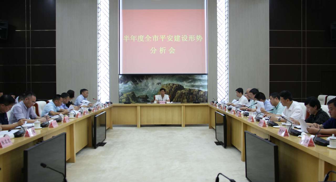 在全市半年度平安建设形势分析会上,各地各有关部门详细分析了1—6月份平安建设形势,研究部署了下阶段平安建设工作。