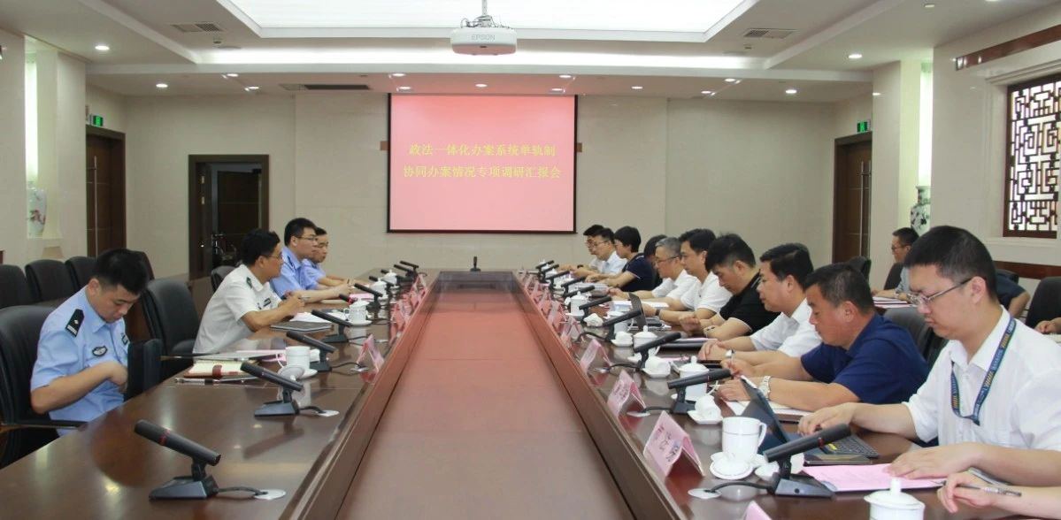 6月30日,由省公安厅党委委员、副厅长王建带队的专项调研组在舟山调研政法一体化办案系统单轨制协同办案工作情况,并与市级政法机关召开情况汇报会。市委副秘书长、政法委常务副书记夏凯慧、市政法各单位分管领导和部门负责人、市政法一体化工作专班成员参加会议。