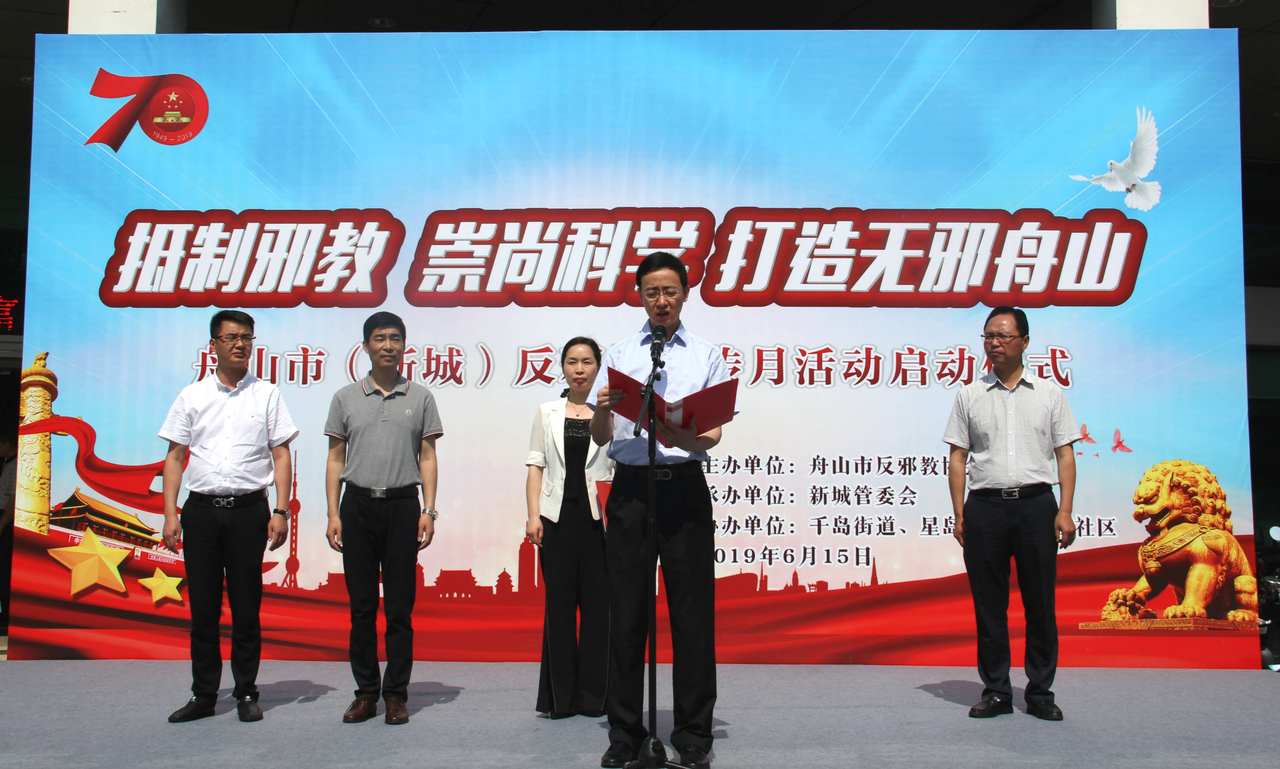 为进一步增强群众自觉抵制邪教能力,持续深入普及科学知识,6月15日上午,由舟山市反邪教协会主办、新城管委会承办的以“抵制邪教、崇尚科学、打造无邪舟山”为主题的舟山市2019年反邪教宣传月活动启动仪式在新城千岛街道星岛社区举行。